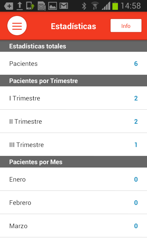 - Gestión de las pacientes por nombre, semanas o trimestres de embarazo